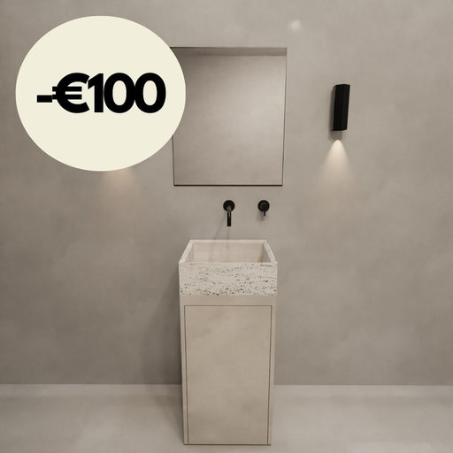 Lavamanos de travertino blanco - Base MicroSkin latte - Émile - Con estantes