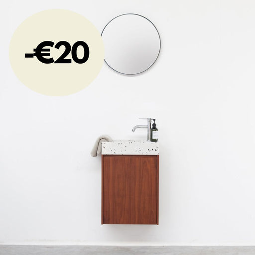 Porto – Krabi Handwaschmaschine mit Schrank – Walnuss – Terrazzoweiß