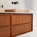 Grâce à ses 4 grands tiroirs, il offre également un espace de rangement pratique pour tous vos produits de toilette ou serviettes. Ce meuble de salle de bain flottant en noyer semble également spacieux.