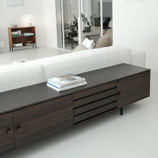 La table basse Melanie est un canapé élégant et robuste en bois de frêne massif dans une couleur fumée élégante. Le design épuré et minimaliste fai...