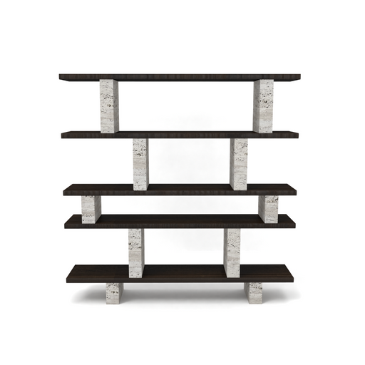 Wandkast - Merpins - Walnoot - Travertin pilaren - 180 cm (Smoke hout / Wit travertijn)