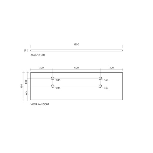 Marcel Solid Surface - Wastafelplaat - 120 cm - Met Gaten (Met Gaten)