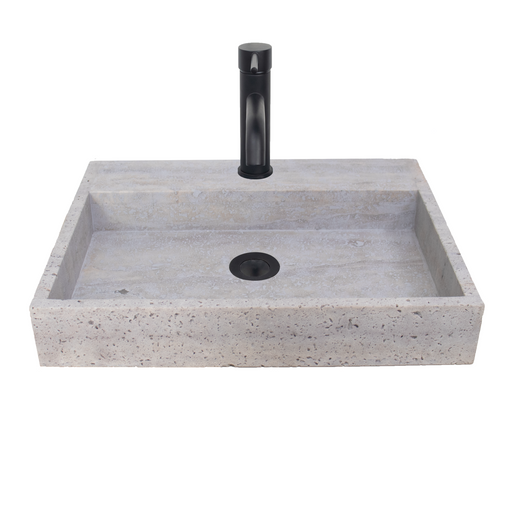 George marmeren wastafel met kraangat - Grijs zandsteen - Travertin