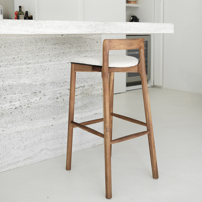 Con una altura de asiento de 75 cm, este taburete es ideal para usar en islas de cocina, barras o mostradores altos. Las patas de madera robustas proporcionan estabilidad, mientras que el asiento acolchado ofrece comodidad extra, ideal para cenas largas o veladas agradables en la barra.