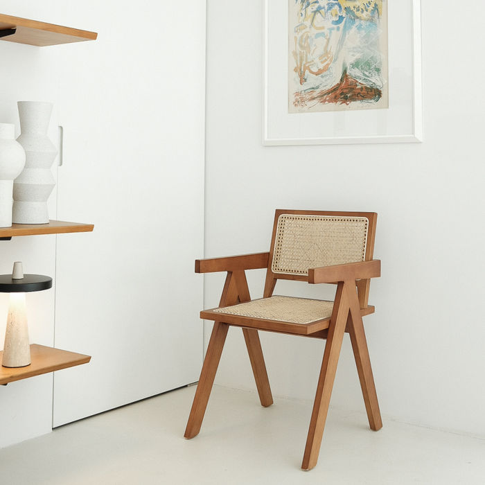 Silla de comedor con reposabrazos - Ambazac - Nogal - Asiento de ratán