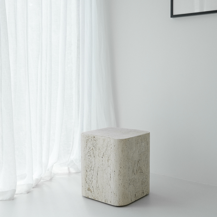 Mesa de centro cuadrada Travertino - Alba - 40 cm - Borde redondo