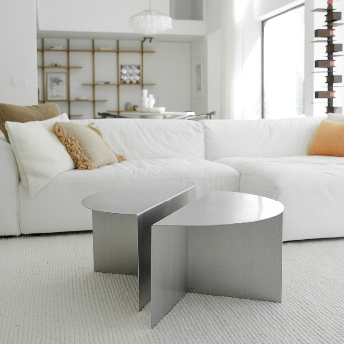 La mesa está fabricada con acero inoxidable cepillado de alta calidad, lo que garantiza un acabado duradero con un brillo mate lujoso. El acero cepillado no solo es elegante, sino también fácil de mantener: basta con un paño suave y un limpiador suave para mantener la superficie limpia. Así conserva su apariencia atemporal sin mucho esfuerzo.