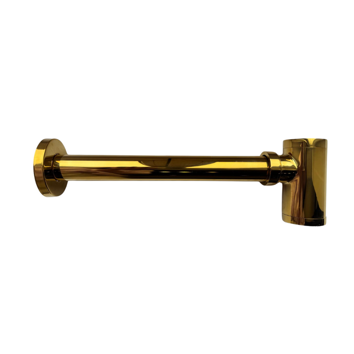 Este sifón dorado está instalado debajo del lavabo y asegura que el agua se drene correctamente, mientras evita malos olores en el espacio. Aunque casi no se ve el sifón, es importante que combine con el resto de la decoración de tu baño. ¿Tienes un baño industrial con acentos cálidos y lujosos? Entonces este sifón de diseño dorado es ideal para ti.